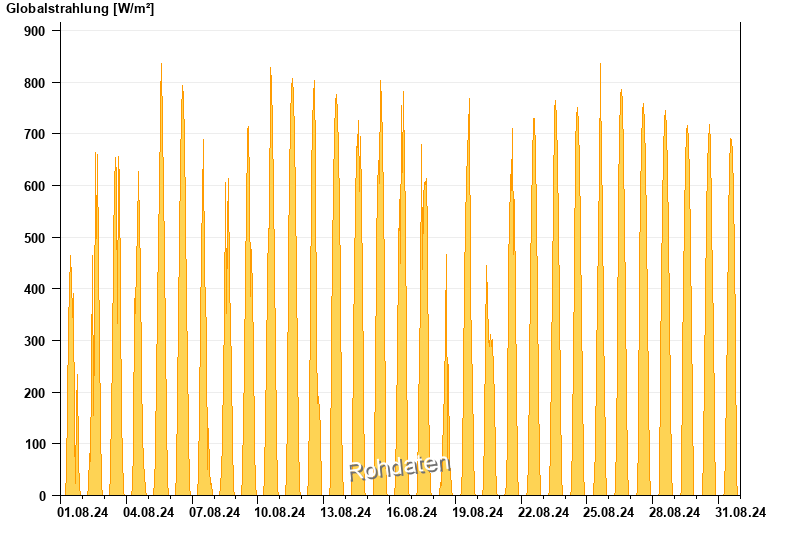 Global radiation from 01.08.2024 to 31.08.2024