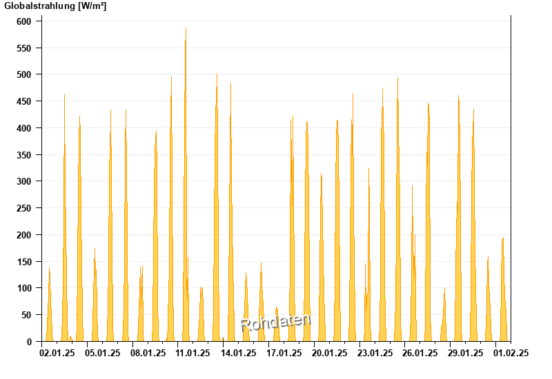 Global radiation from 02.01.2025 to 01.02.2025