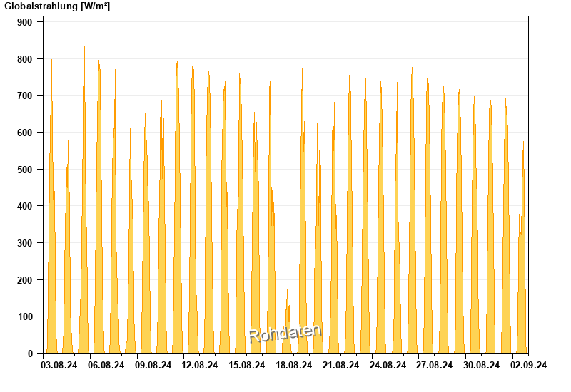 Global radiation from 03.08.2024 to 02.09.2024