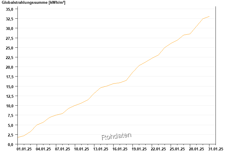 Global radiation from 01.01.2025 to 31.01.2025