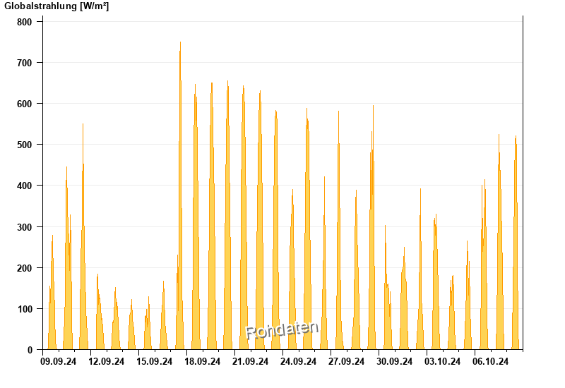 Global radiation from 09.09.2024 to 08.10.2024
