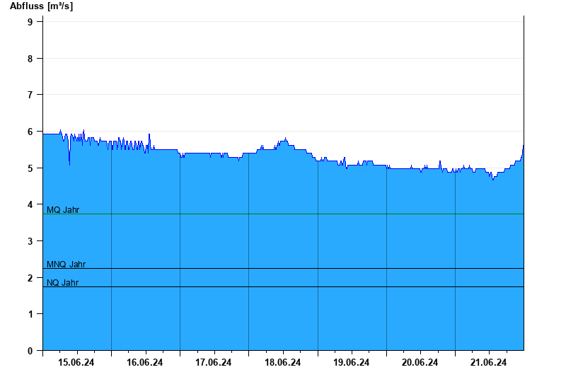 - Mittlerer Niedrigwasserabfluss MNQ 2,25 m³/s