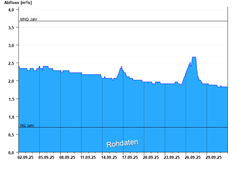 - Mittlerer Niedrigwasserabfluss MNQ 3,67 m³/s