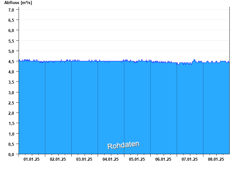 Der Pegel wird durch Baumaßnahmen unterhalb beeinflusst (Rückstau). Entsprechend sind die Abflusswerte nicht korrekt