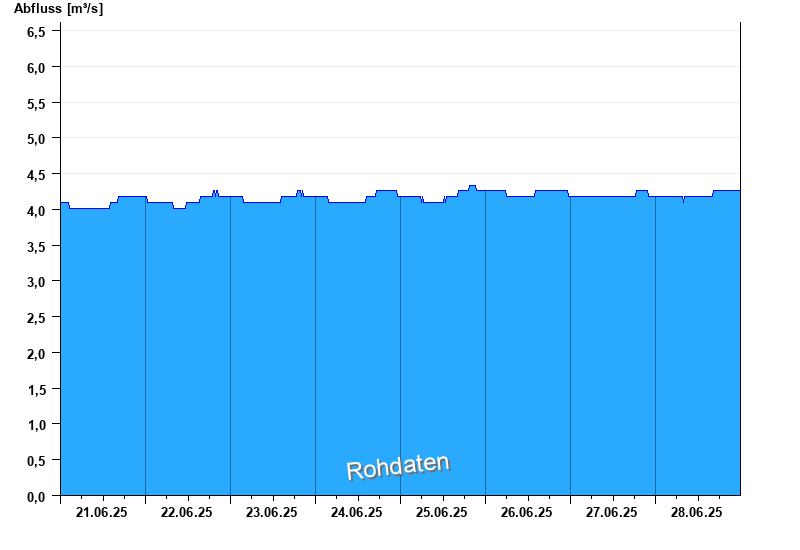 Der Pegel wird durch Baumaßnahmen unterhalb beeinflusst (Rückstau). Entsprechend sind die Abflusswerte nicht korrekt