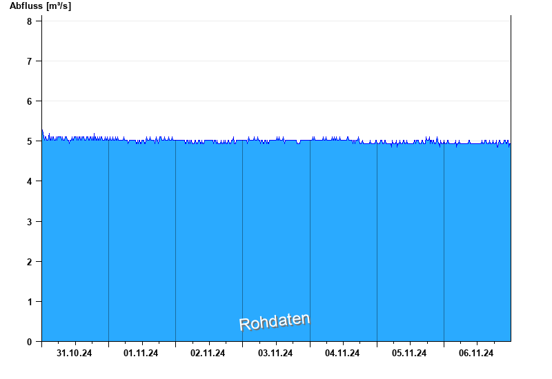 Der Pegel wird durch Baumaßnahmen unterhalb beeinflusst (Rückstau). Entsprechend sind die Abflusswerte nicht korrekt
