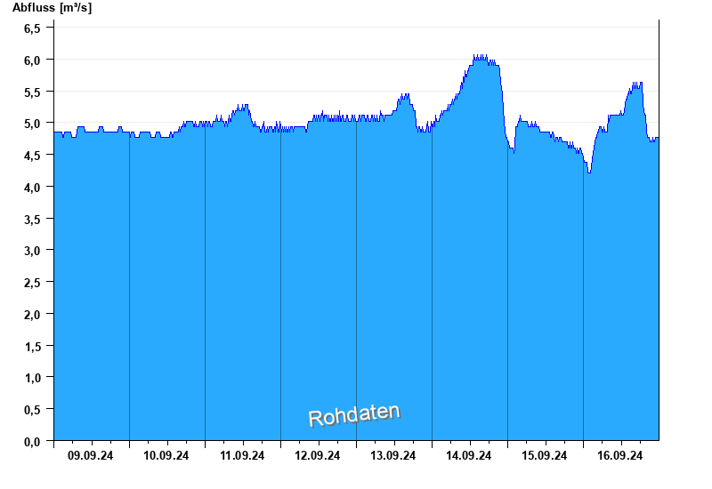 Der Pegel wird durch Baumaßnahmen unterhalb beeinflusst (Rückstau). Entsprechend sind die Abflusswerte nicht korrekt