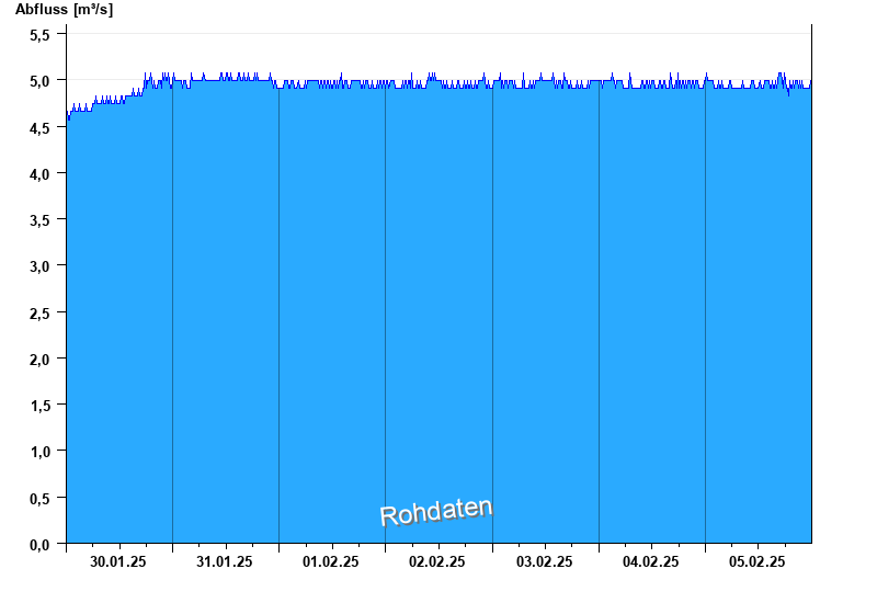 Der Pegel wird durch Baumaßnahmen unterhalb beeinflusst (Rückstau). Entsprechend sind die Abflusswerte nicht korrekt