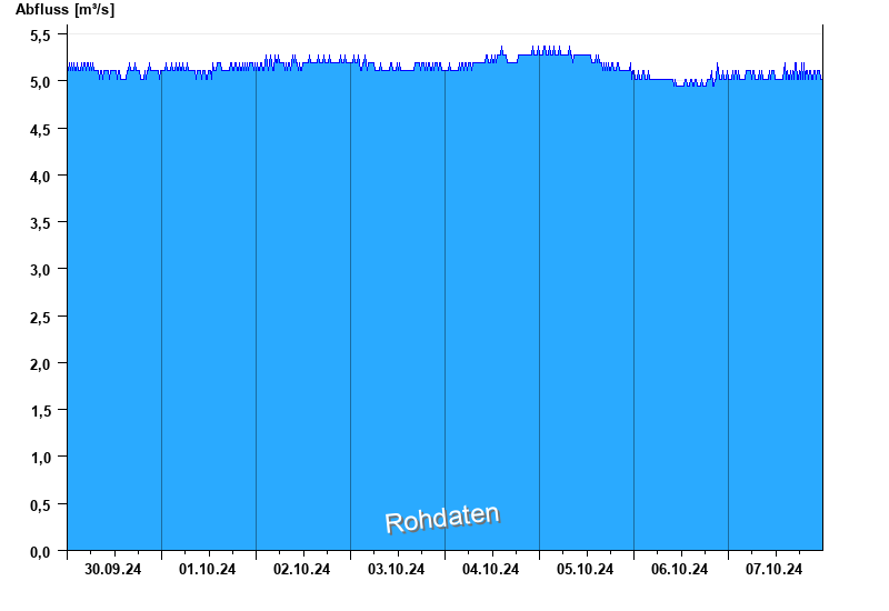 Der Pegel wird durch Baumaßnahmen unterhalb beeinflusst (Rückstau). Entsprechend sind die Abflusswerte nicht korrekt