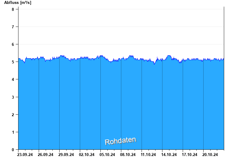 Der Pegel wird durch Baumaßnahmen unterhalb beeinflusst (Rückstau). Entsprechend sind die Abflusswerte nicht korrekt