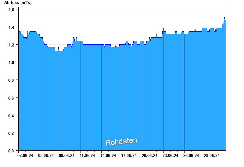 Der Pegel wird durch Baumaßnahmen unterhalb beeinflusst (Rückstau). Entsprechend sind die Abflusswerte nicht korrekt