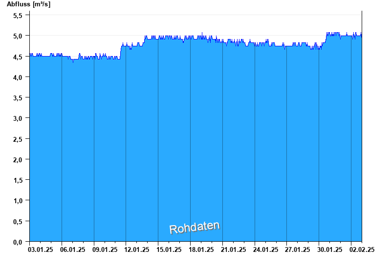 Der Pegel wird durch Baumaßnahmen unterhalb beeinflusst (Rückstau). Entsprechend sind die Abflusswerte nicht korrekt