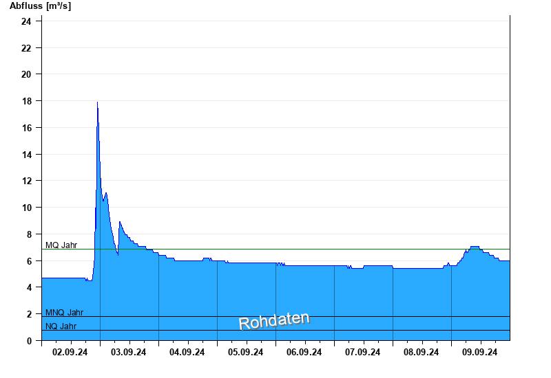 - Mittlerer Niedrigwasserabfluss MNQ 1,8 m³/s