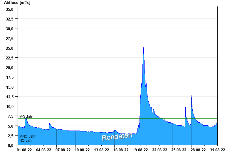 - Mittlerer Niedrigwasserabfluss MNQ 1,8 m³/s