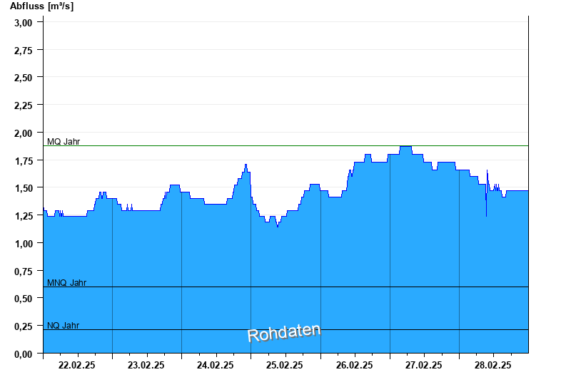 - Mittlerer Niedrigwasserabfluss MNQ 0,6 m³/s