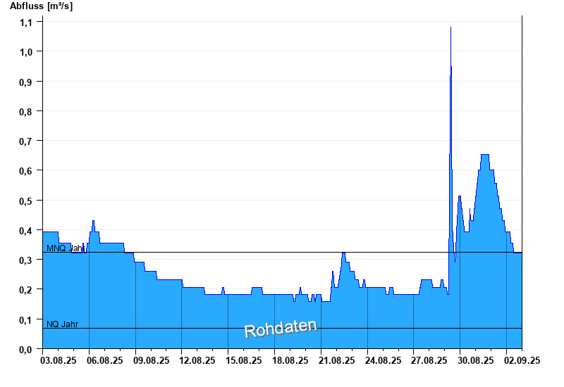 - Mittlerer Niedrigwasserabfluss MNQ 0,325 m³/s