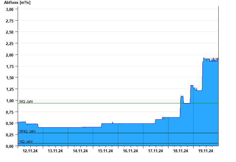 - Mittlerer Niedrigwasserabfluss MNQ 0,283 m³/s