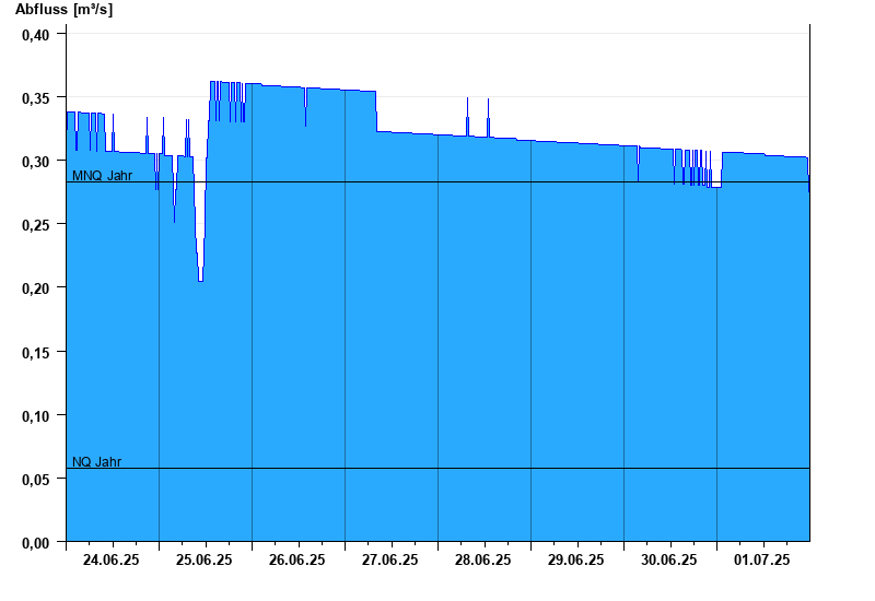 - Mittlerer Niedrigwasserabfluss MNQ 0,283 m³/s