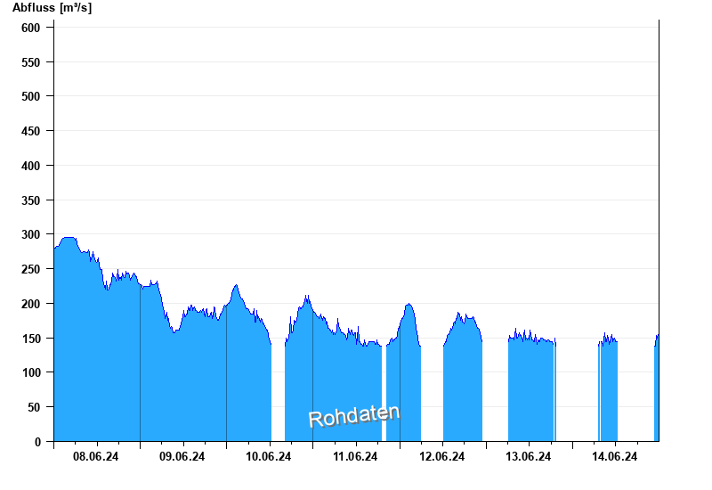 Ausgabe von Abflusswerten wegen Stauregelung erst ab W = 130 cm