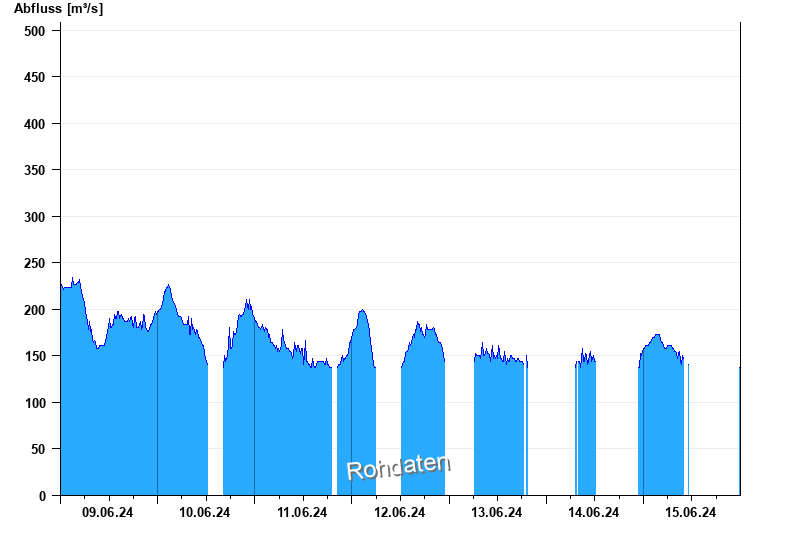 Ausgabe von Abflusswerten wegen Stauregelung erst ab W = 130 cm