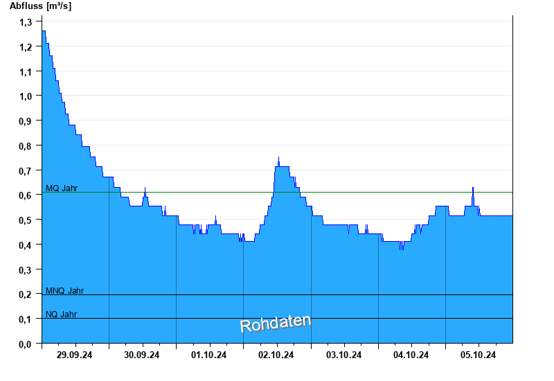 - Mittlerer Niedrigwasserabfluss MNQ 0,195 m³/s