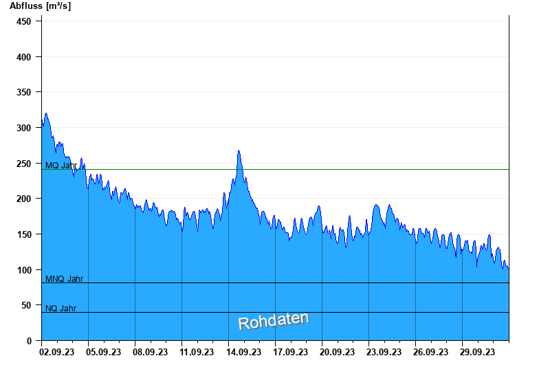 - Mittlerer Niedrigwasserabfluss MNQ 81,1 m³/s