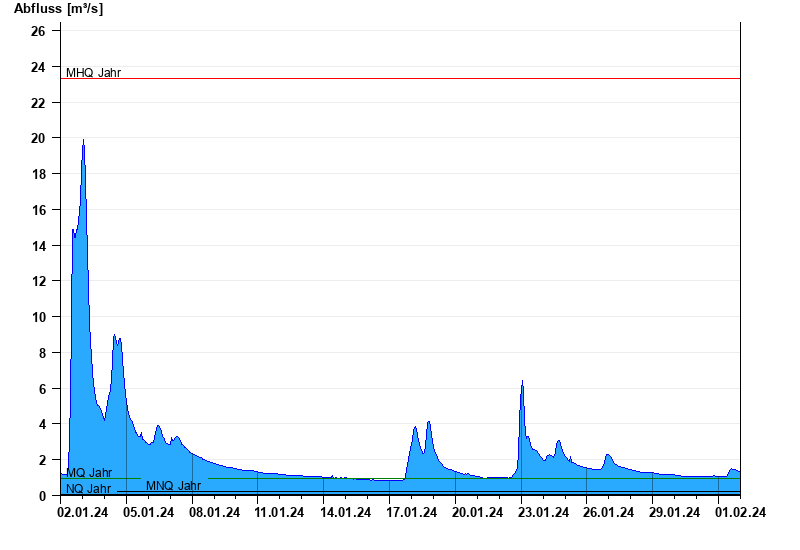 - Mittlerer Hochwasserabfluss MHQ 23,3 m³/s