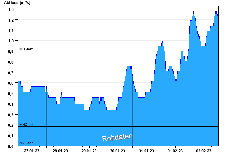 - Mittlerer Niedrigwasserabfluss MNQ 0,185 m³/s