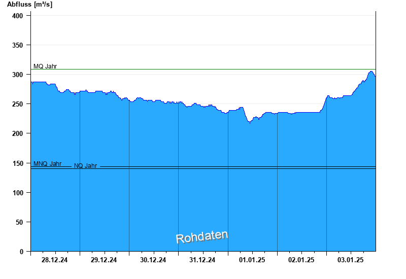 - Mittlerer Niedrigwasserabfluss MNQ 144 m³/s