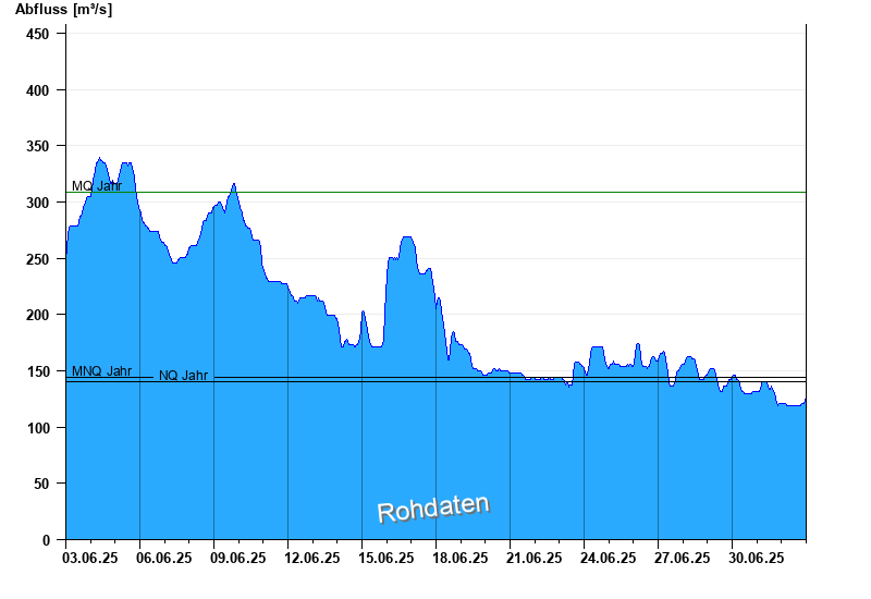 - Mittlerer Niedrigwasserabfluss MNQ 144 m³/s