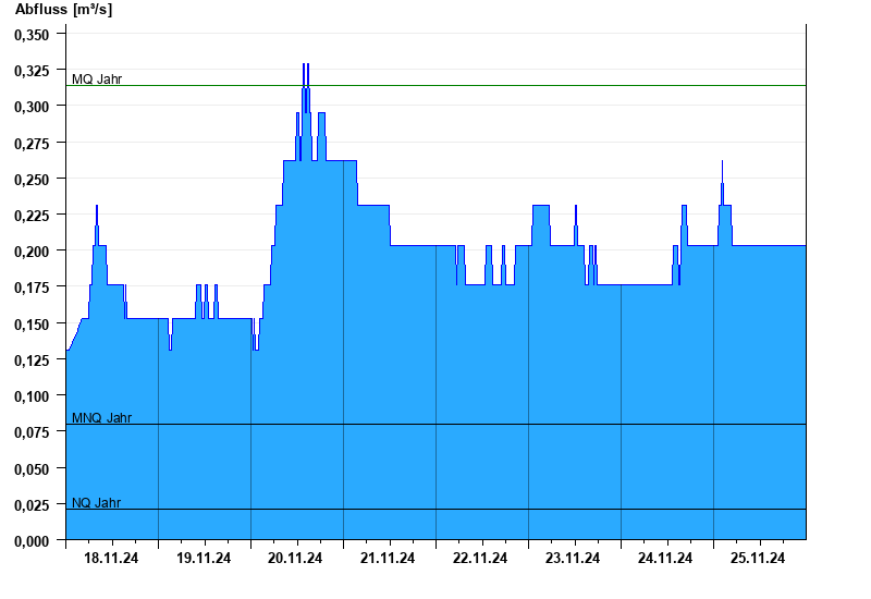 - Mittlerer Niedrigwasserabfluss MNQ 0,08 m³/s