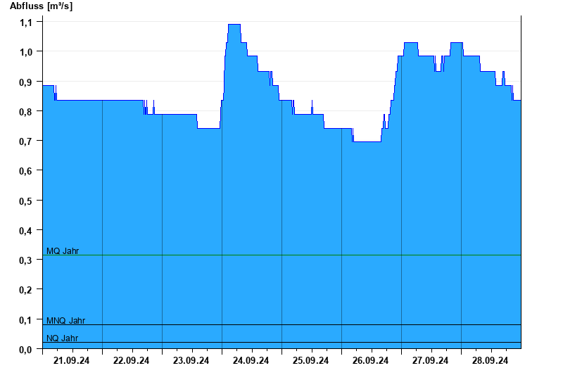 - Mittlerer Niedrigwasserabfluss MNQ 0,08 m³/s