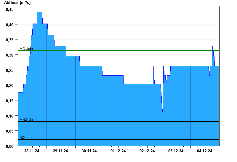 - Mittlerer Niedrigwasserabfluss MNQ 0,08 m³/s