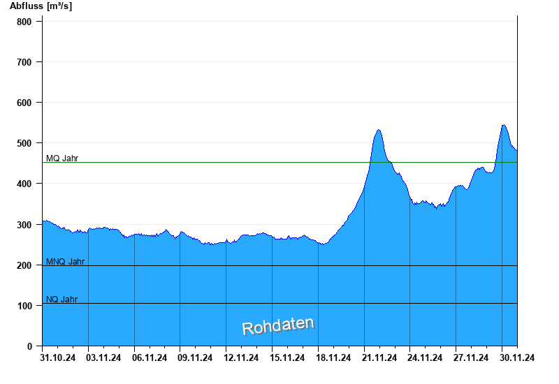 - Mittlerer Niedrigwasserabfluss MNQ 198 m³/s