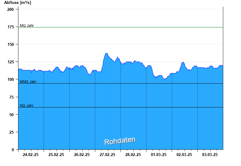 - Mittlerer Niedrigwasserabfluss MNQ 94,3 m³/s