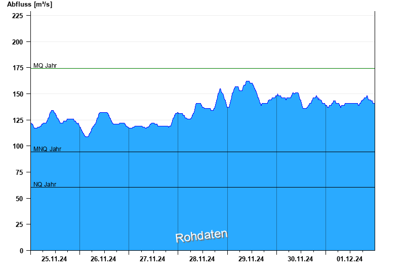 - Mittlerer Niedrigwasserabfluss MNQ 94,3 m³/s