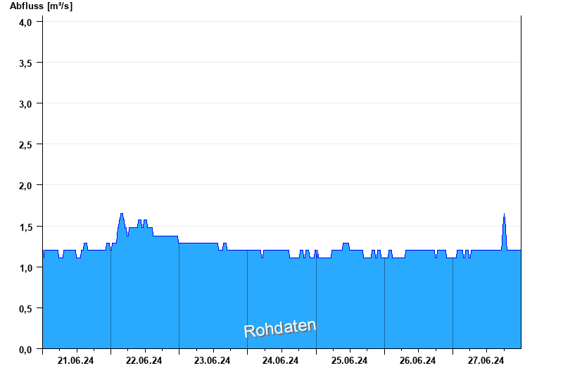 Abfluss durch starke Verkrautung behindert; Abflusswerte unsicher