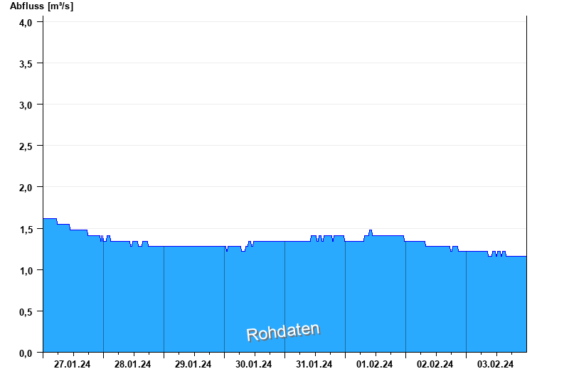Abfluss durch starke Verkrautung behindert; Abflusswerte unsicher