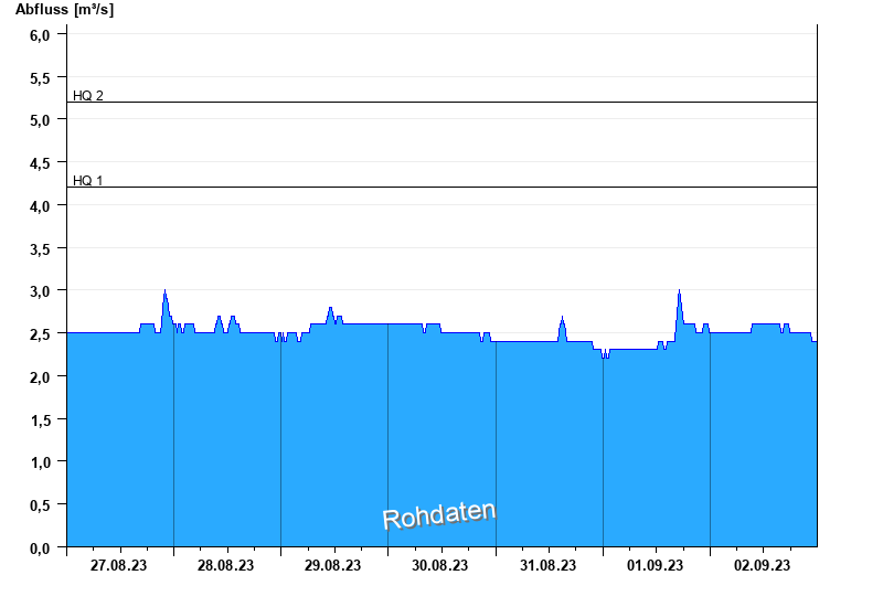 Abfluss durch starke Verkrautung behindert; Abflusswerte unsicher