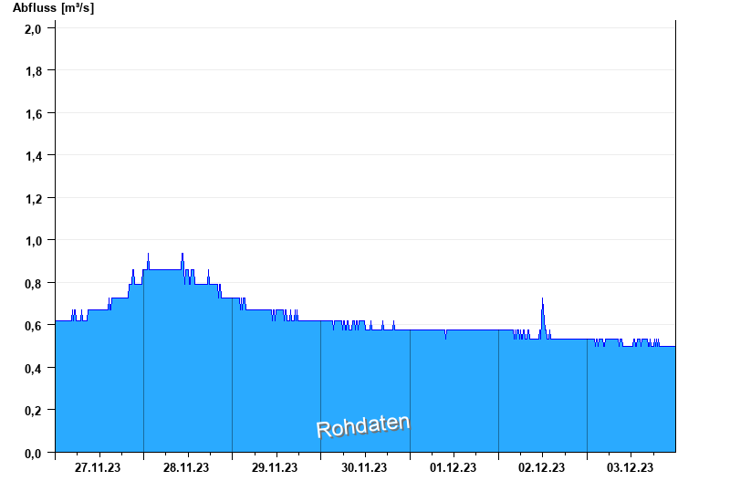 Abfluss durch starke Verkrautung behindert; Abflusswerte unsicher