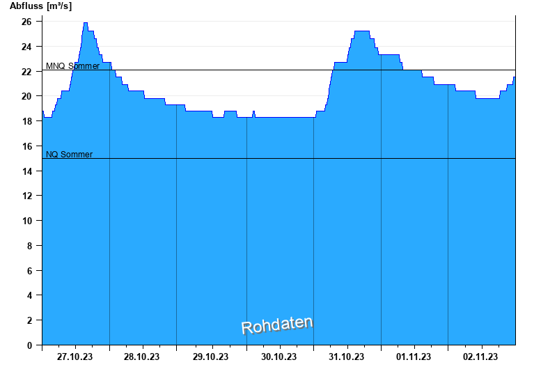 - Mittlerer Niedrigwasserabfluss MNQ 22,1 m³/s