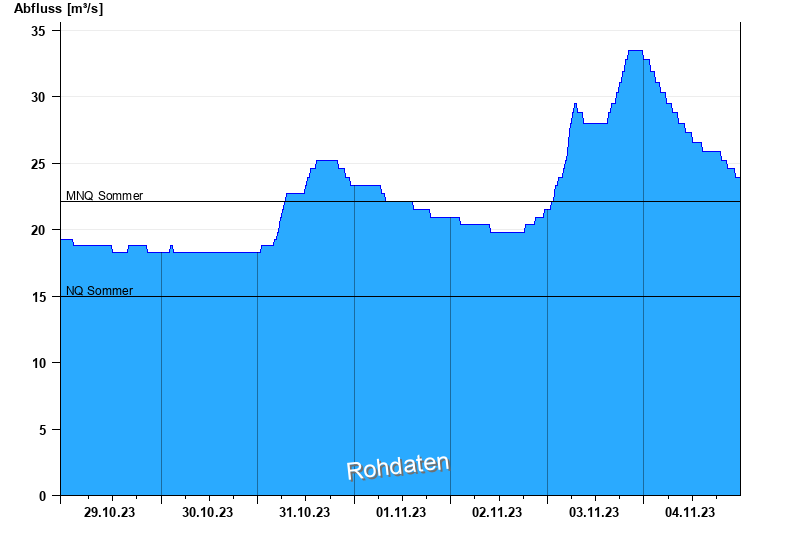 - Mittlerer Niedrigwasserabfluss MNQ 22,1 m³/s