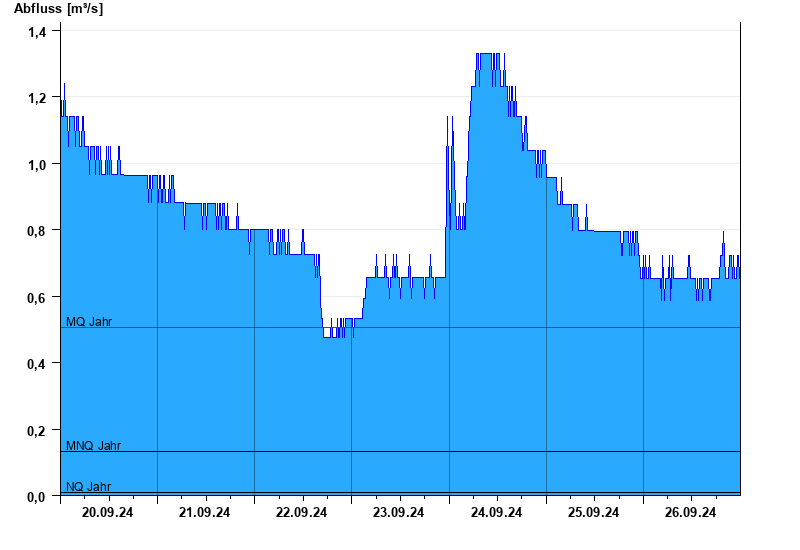 - Mittlerer Niedrigwasserabfluss MNQ 0,133 m³/s