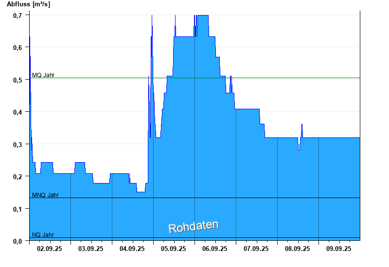 - Mittlerer Niedrigwasserabfluss MNQ 0,133 m³/s