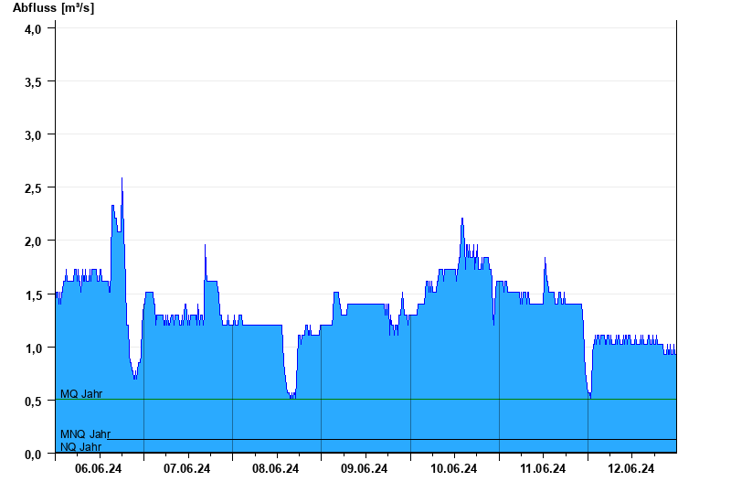- Mittlerer Niedrigwasserabfluss MNQ 0,133 m³/s