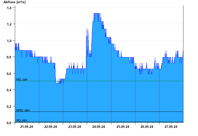 - Mittlerer Niedrigwasserabfluss MNQ 0,133 m³/s
