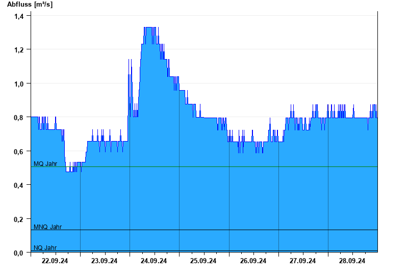- Mittlerer Niedrigwasserabfluss MNQ 0,133 m³/s