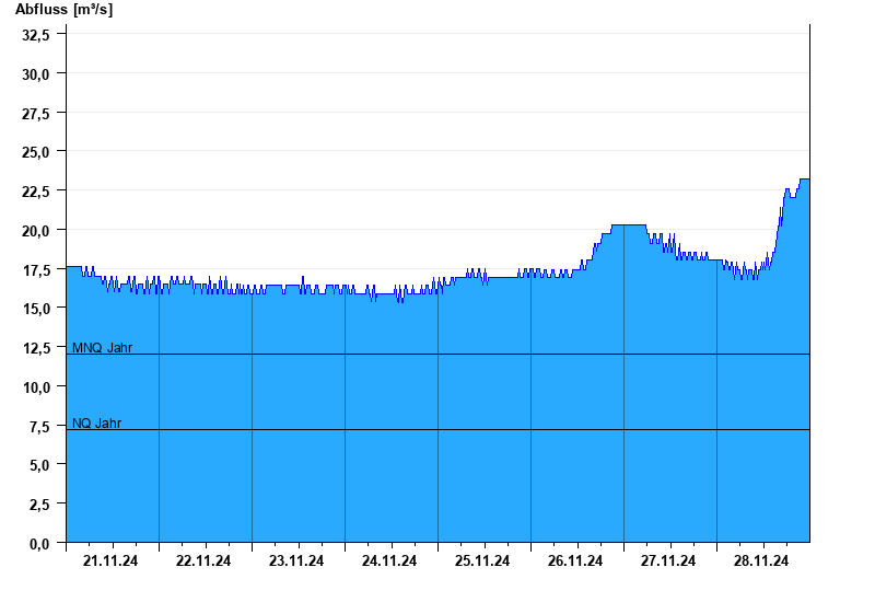 - Mittlerer Niedrigwasserabfluss MNQ 12 m³/s
