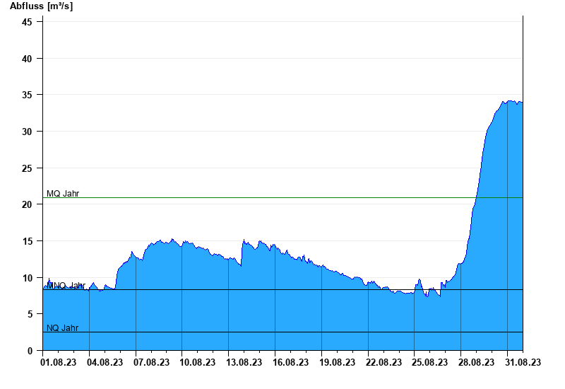- Mittlerer Niedrigwasserabfluss MNQ 8,32 m³/s