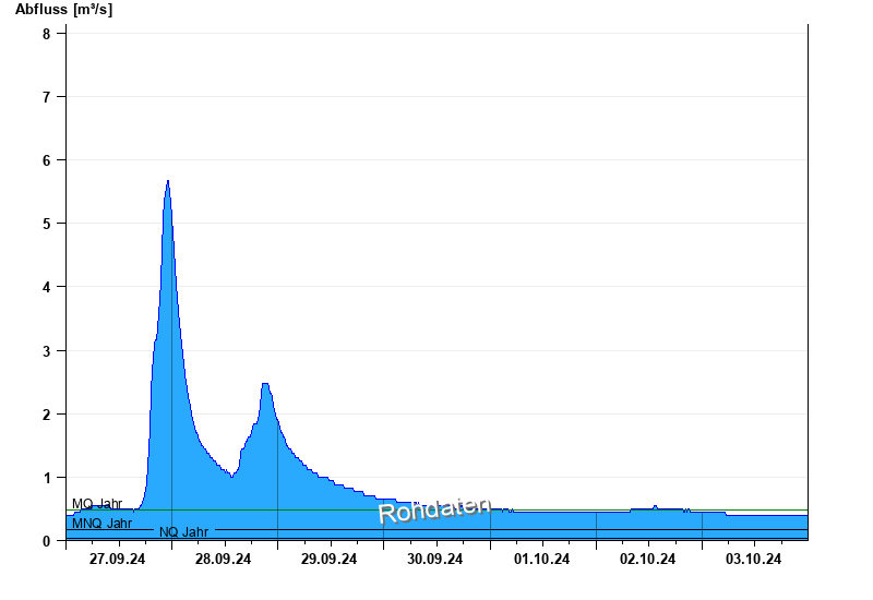 - Mittlerer Niedrigwasserabfluss MNQ 0,165 m³/s